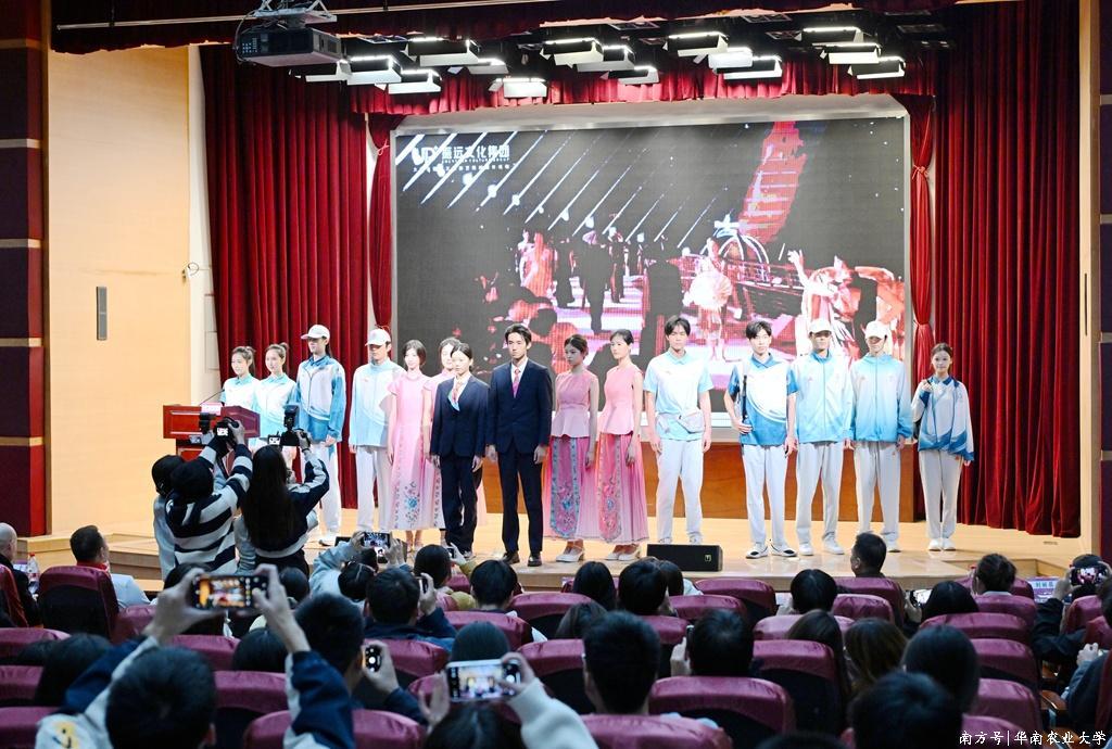 现场,由17名华农艺术学院表演系的学子担任模特,身着十五运会颁奖礼服、志愿者服、运动员服和裁判员服,带来一场特别的时装走秀。岭南醒狮、马面裙、木棉花等岭南元素的融入,既保证了服装的功能性,又彰显地域文化特色。