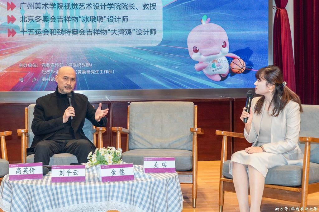 “从水球赛场的热血拼搏到‘大湾鸡’吉祥物的萌动出圈,从非遗面料的匠心传承到运动服装的美学创新,全运会从来不只是竞技的舞台,更是文化共生的盛宴。”活动现场,嘉宾们以刚落幕的十五运会为纽带,围绕体育竞技、视觉设计、非遗技艺三大领域畅所欲言,为师生带来一场既有实践温度、更有思想深度的文化对话。