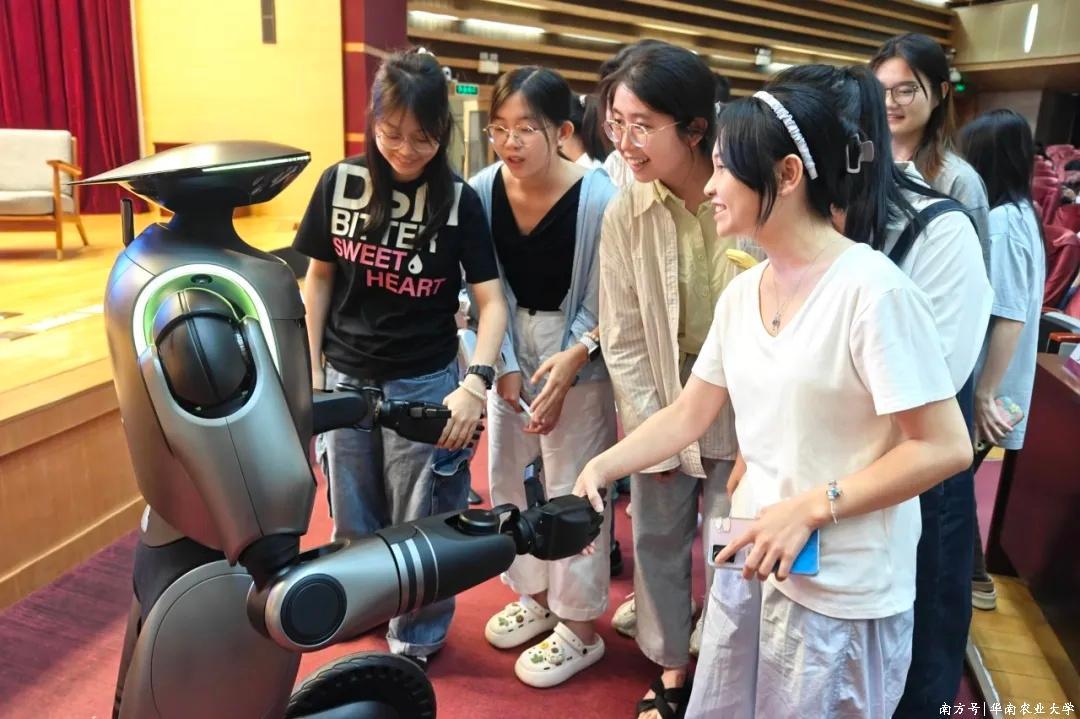 “华农慧客厅”第二期“AI启未来”活动现场,华农学子与机器人互动